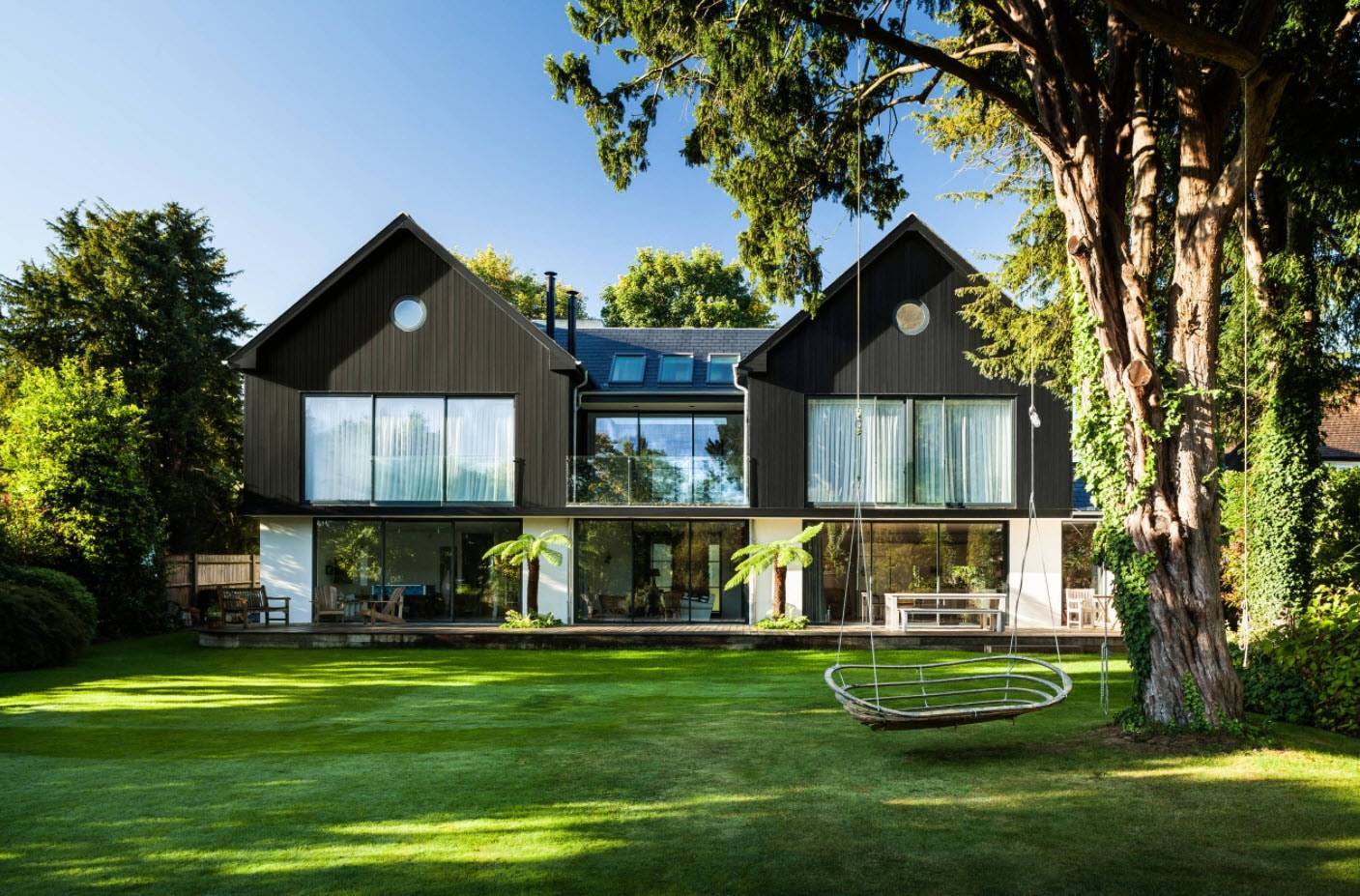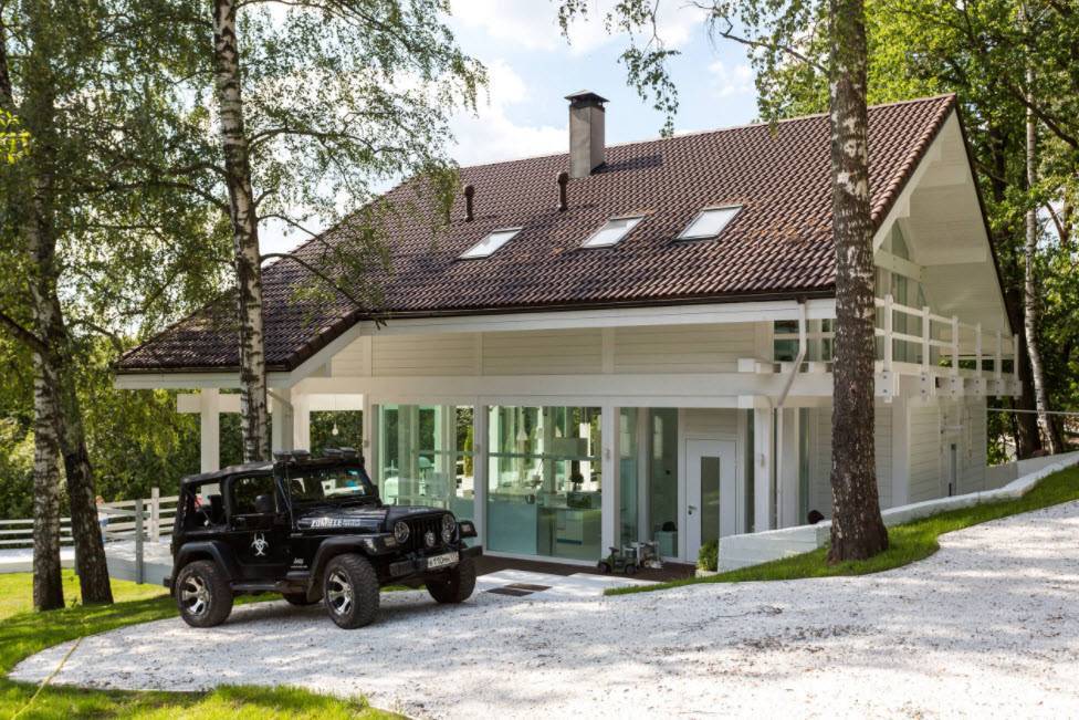 Чаще всего такой конструкцией оборудуют дачный дом. Но иногда этот вариант используется и в жилых загородных зданиях. Дом с мансардой и с таким окном выглядит очень красиво и современно.