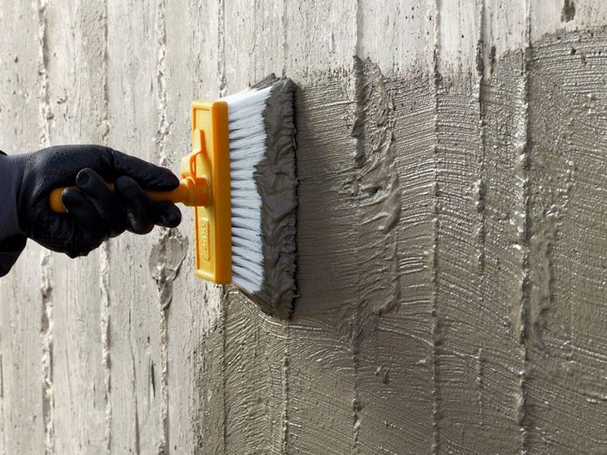 Чтобы улучшить адгезию необходимо прогрунтовать ранее подготовленную поверхность при помощи специального праймера. Тип грунтовки подбирается соответственно гидроизоляционной смеси, которая используется. С использованием кисти или же при помощи валика, как кому удобнее, прогрунтуйте основание в один слой. Подождите, пока праймер высохнет, и поверхность перестанет быть влажной.