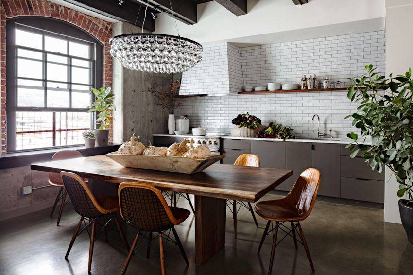Из-за того что в одном помещении совмещаются разные функции, даже небольшую кухню делят на две зоны — рабочую и обеденную. И подчеркивает разделение использование разных отделочных материалов, в том числе для стен. Так что чаще всего приходится выбирать два типа отделки для стен на кухню — в рабочую зону что-то очень практичное, легко моющееся, а в обеденную в том же стиле и цвете, но более уютное.