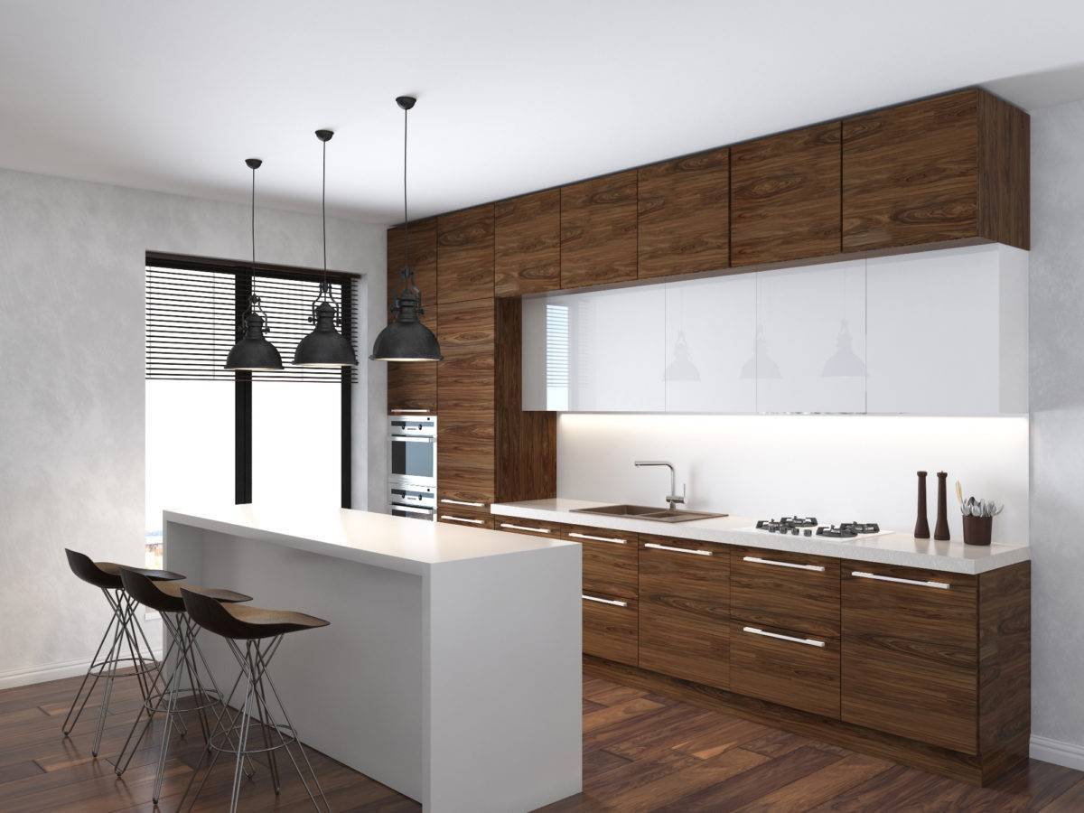 Стоит уделить внимание цвету фасадам гарнитура. Белые хорошо комбинируют с бежевыми или персиковыми стенами, а коричневые или деревянные – с осветленными