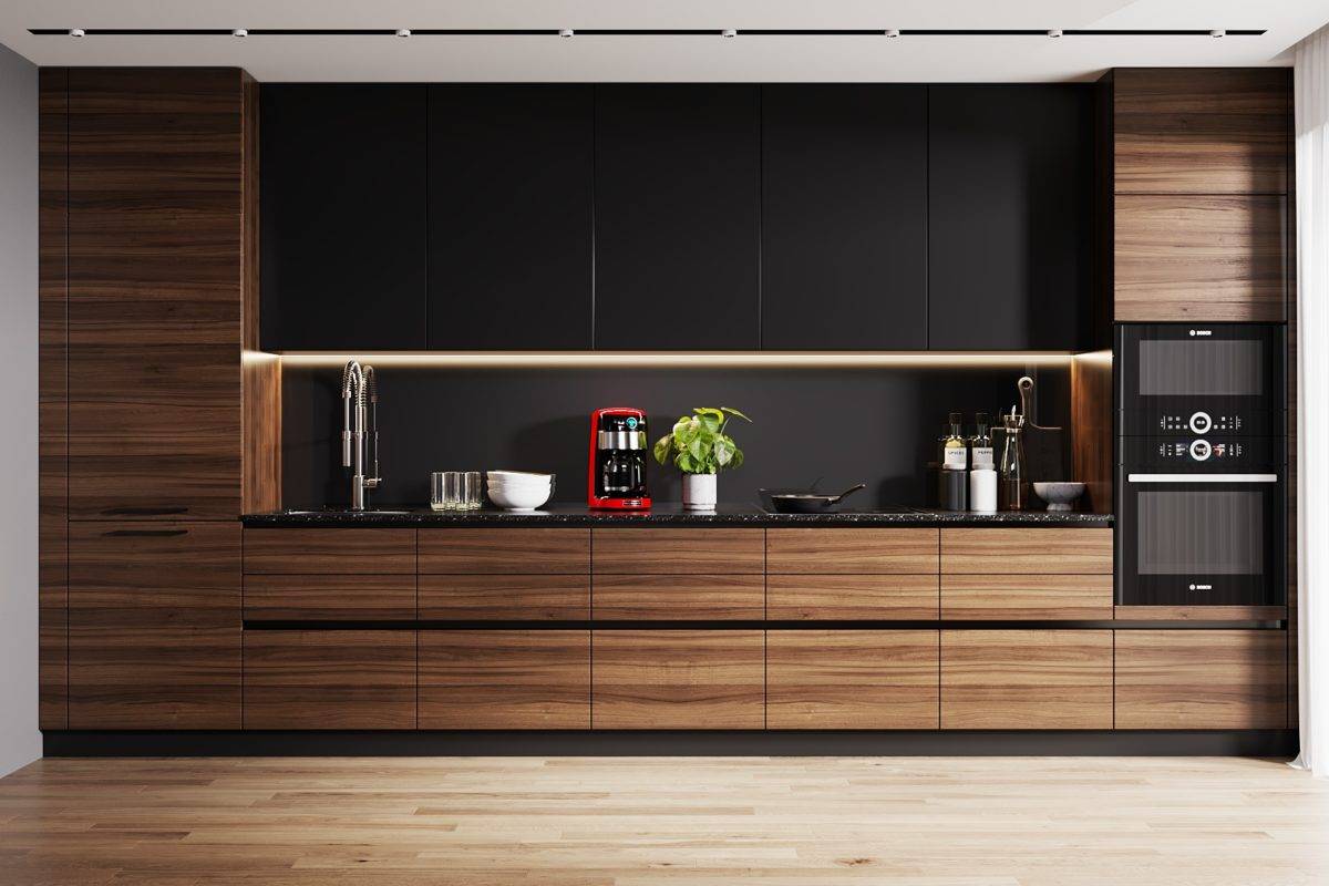 - гармоничность – материалы должны соответствовать тонам и структуре кухонной мебели, потолка, пола и техники, ведь от того, чем отделаны стены в кухне, зависит общий вид и уют помещения;