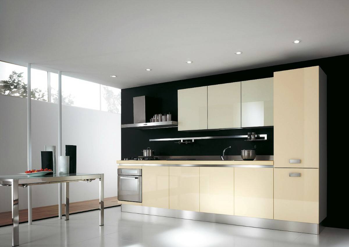 Отделочная палитра не должна превышать 3-х цветов. Иначе длительное пребывание на кухне будет утомительным для глаз. По этой же причине нельзя делать преобладающими яркие, насыщенные оттенки. В современных интерьерах предпочтительны нейтральные, естественные цвета. Яркие колеры повышают аппетит, но достаточно 2-3-х небольших акцентов, например, полок на стенах и цветочных горшков.