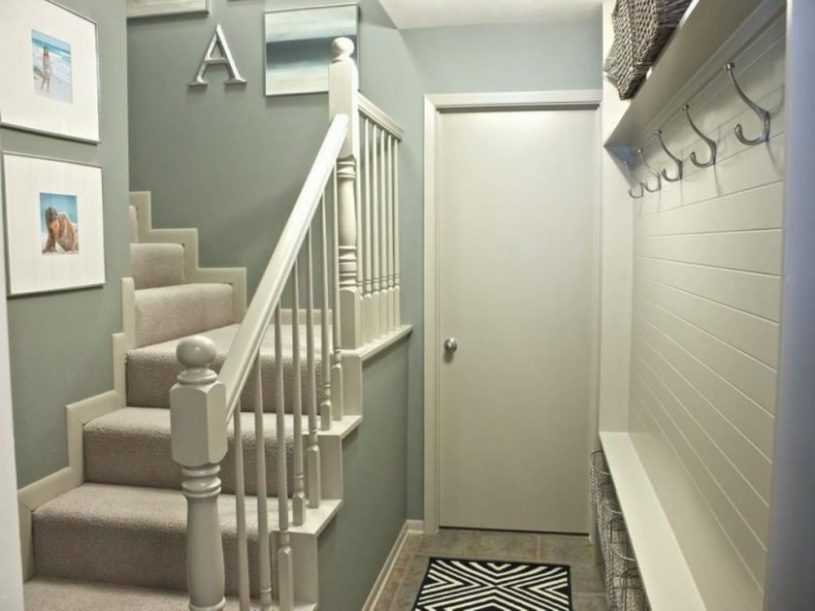 Цветовое оформление. Желательно в светлых тонах, но с вкраплениями темного. Например, стены и потолок светлых оттенков, мебель и коврик на входе более темный. Но не стоит брать за основу белый цвет. На таком фоне вся грязь, принесенная с улицы, будет видна, как и мельчайшие потертости.