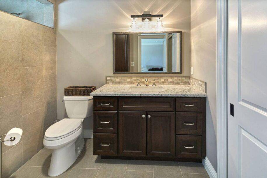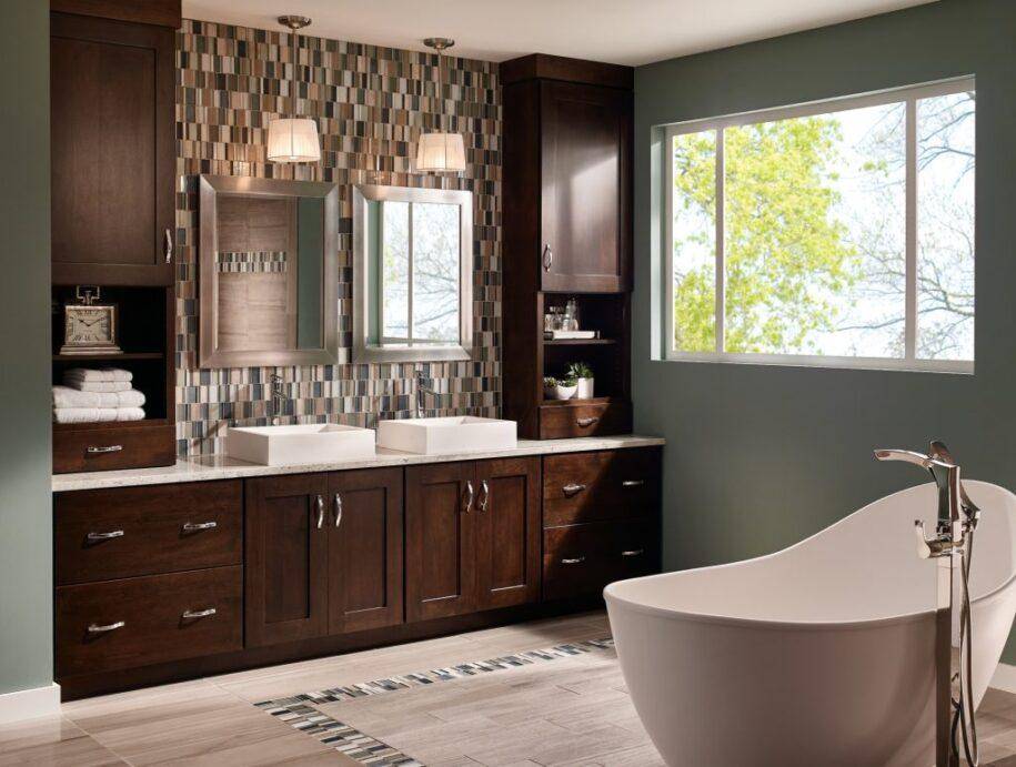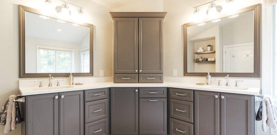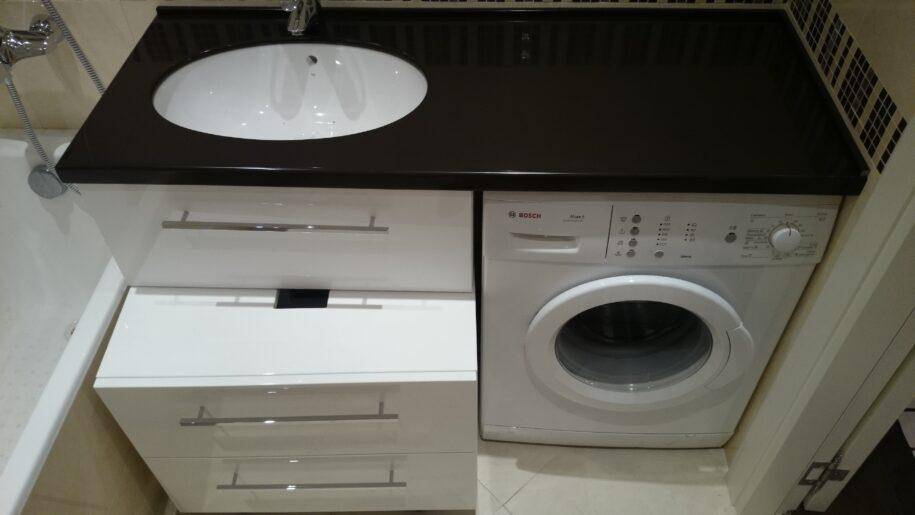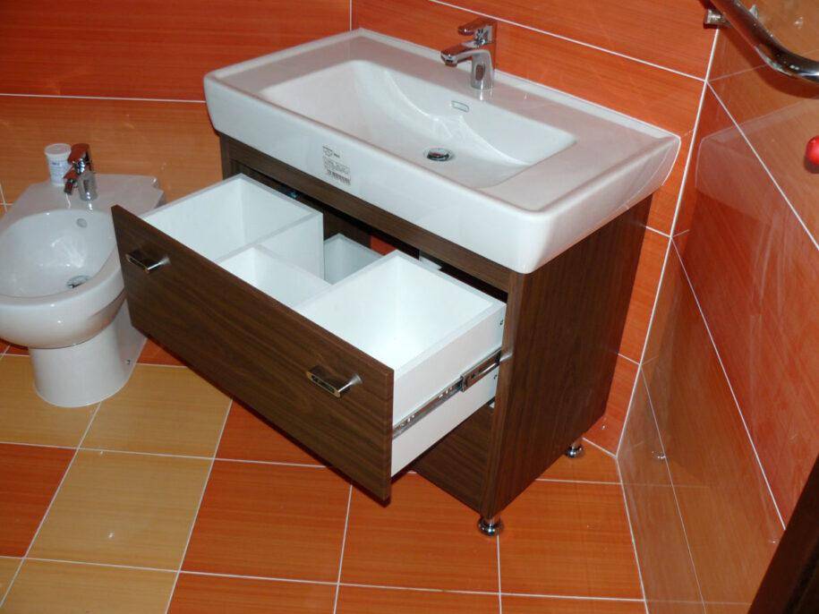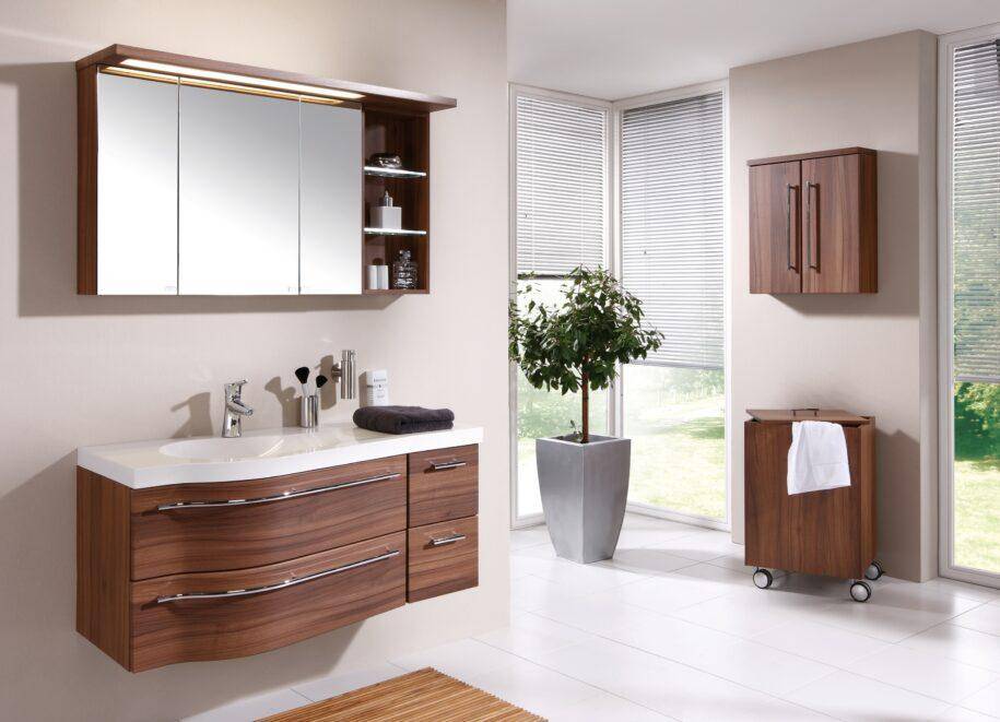В самом начале важно продумать место установки. Когда места в ванной хватает, можно не мелочится и заказать широкий гарнитур с мойкой