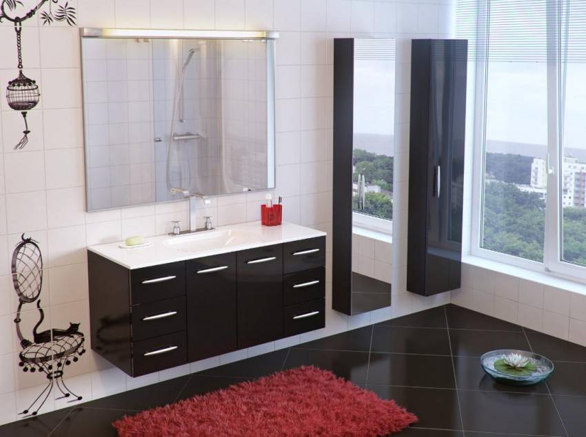 - если в ванной комнате оборудованы полы с подогревом, покупайте только мебель на ножках, иначе постоянное воздействие высокой температуры быстро приведет предметы обстановки в негодность;
