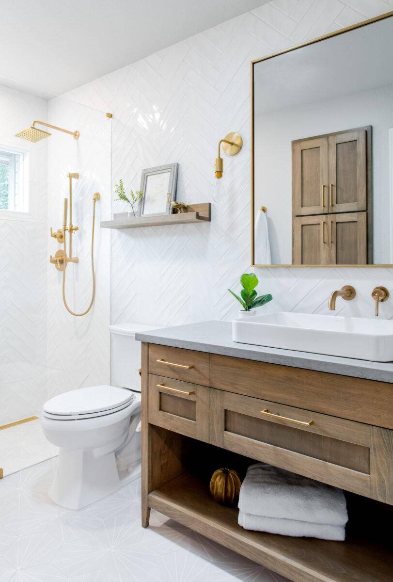 Современный стиль – это концентрация функциональности, практичности и элегантности. Именно этим он хорош для такого же предельно функционального и практичного санузла.