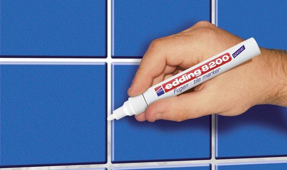 Исправить быстро ситуацию поможет специальный маркер. Недостатком способа является недолговечность. Использование оправдано, когда требуется быстро замаскировать недостатки перед приездом гостей. Перед нанесением маркера требуется провести подготовительные работы. Поверхности очищаются мыльной водой от грязи, грибковых образований, плесени. После смывается, поверхность кафеля вместе со швами протирается насухо чистой тряпкой. После необходимо дать время чтобы затирка немного подсохла. Затем они прорисовываются маркером, не выходя за пределы стыка. Нанесения маркера на мокрую поверхность сведет на ноль всю проделанную работу. Результат подобного перекрашивания держится не долго, через короткий промежуток времени все вернется и загрязненные участки снова будут видны.