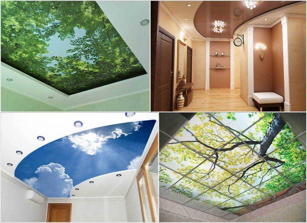 Для узкой прихожей отлично подойдет зеркальный потолок из пластика или глянцевого полотна. За счет небольшой площади такая отделка не будет стоить дорого. Если бюджет не позволяет, поверхность обновляется белой, синей зеркальной краской с высоким светоотражением.