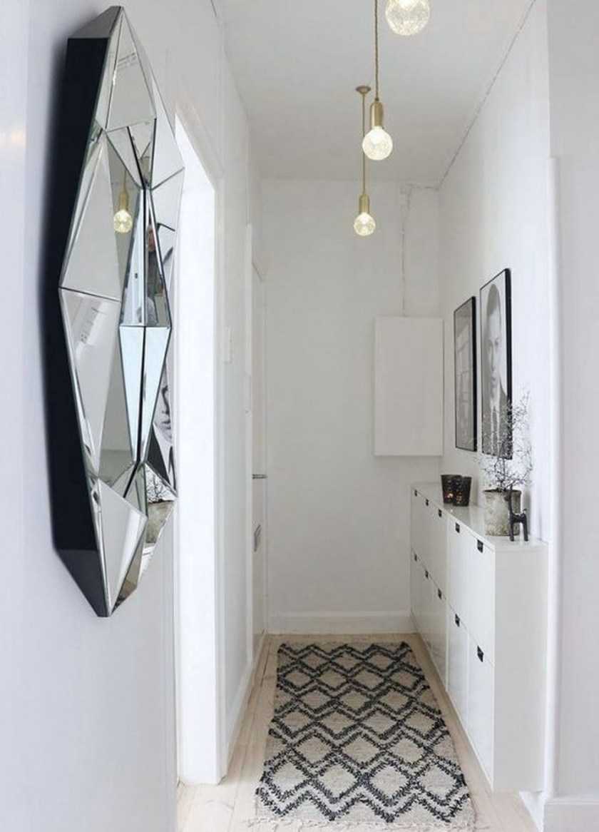 Опытные дизайнеры советуют подобрать разнообразные по функциям предметы мебели в прихожую. Также для узких коридоров очень актуальна мебель с зеркальными фасадами, как на фото. Он позволяет визуально расширить пространство. А крупным предметам с распашными дверями нужно отдавать наименьшее предпочтение, так как они требуют много места.