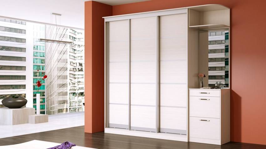 | Шкаф | Для узкого пространства установить полноценный шкаф с распашными дверями не вполне уместно. Лучше отдать предпочтение варианту купе или узкому пеналу с выдвижной дверкой. Шкаф купе позволяет избежать скрадывания дополнительного пространства, как в случае с стандартным шкафом с распашными дверями. А если тщательно продумать его наполнение, что мебель будет очень функциональна. |