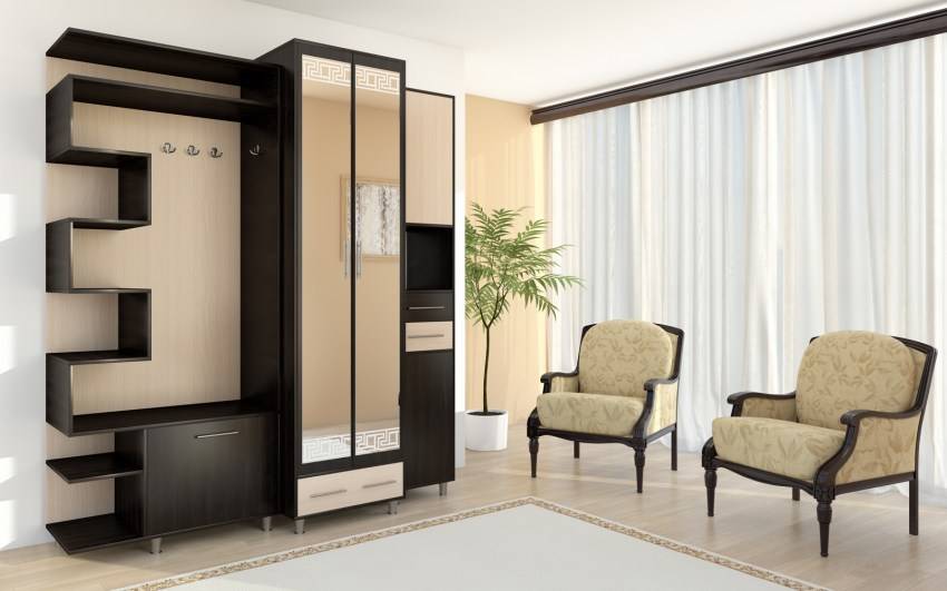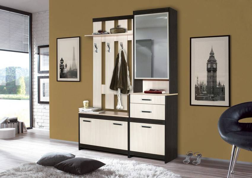 Малогабаритная прихожая должна быть функциональной и вместительной, поэтому нужно выбирать модель, включающую следующие элементы: