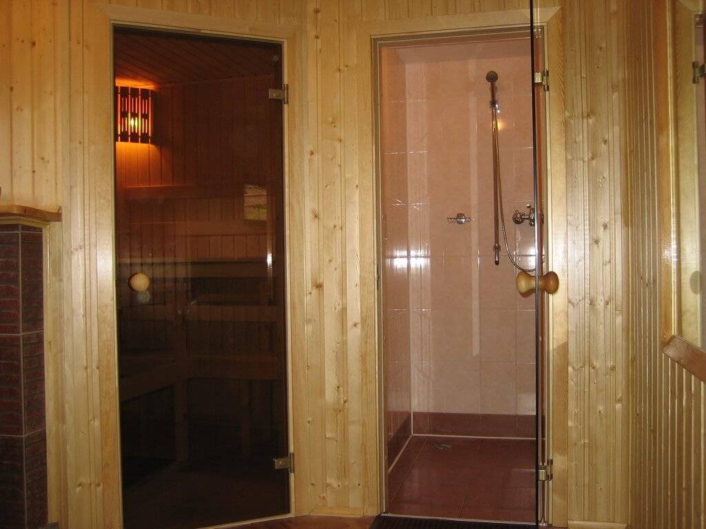 Если для парилки важно использовать древесину, не содержащую смолу, то помывочную лучше обшить вагонкой из лиственницы, ели или сосны. Смола служит дополнительной защитой от гниения в условиях повышенной влажности