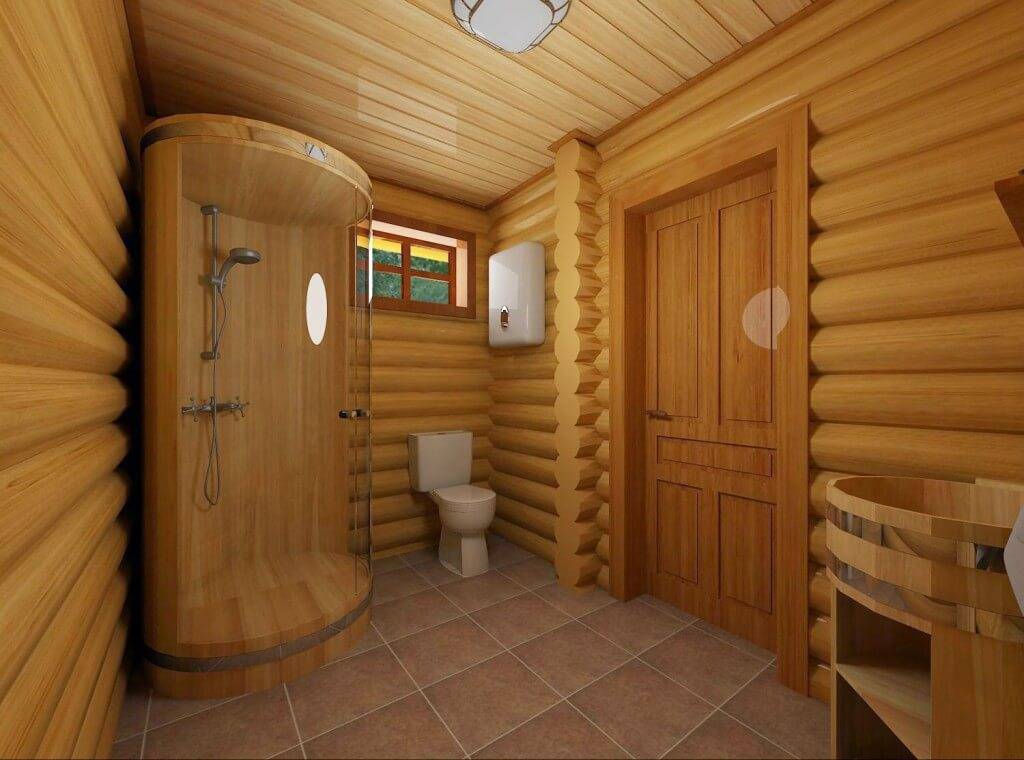 В небольших банях моечная может быть совмещена с санузлом. В такой моечной можно установить обычную душевую кабинку. В этом случае вода не будет так контактировать с отделкой стен.