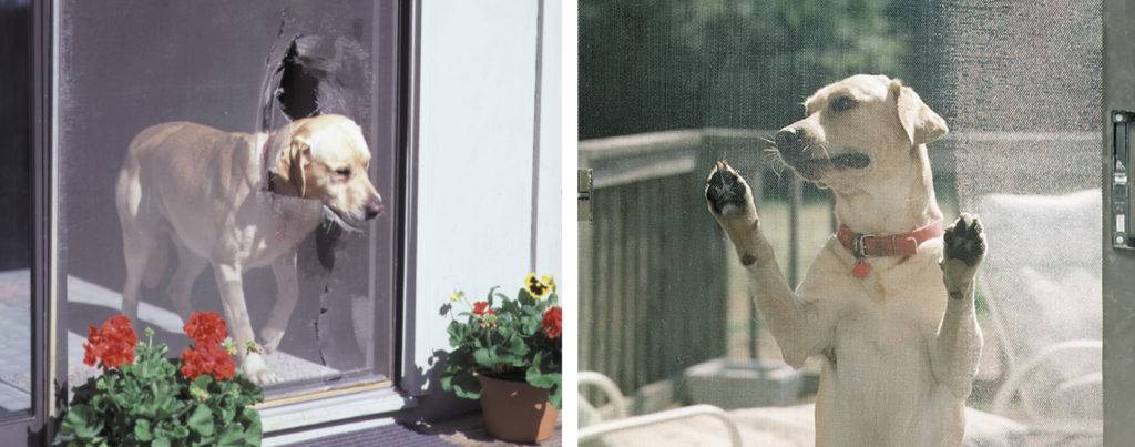 Антикошка. Такая система надежно перекрывает проход, не позволяя домашним питомцам покидать помещение без разрешения хозяев. Она открывается только внутрь, а магнитная система не позволяет открыть двери лапой. Каркас и сетчатое полотно такой конструкции изготавливают более прочными, чтобы животные не могли порвать или сломать ее. Антимоскитное полотно для системы «антикошка» состоит из полиэстера со специально укрепляющей пропиткой. Такое полотно натягивают только на металлический каркас рамочного типа.