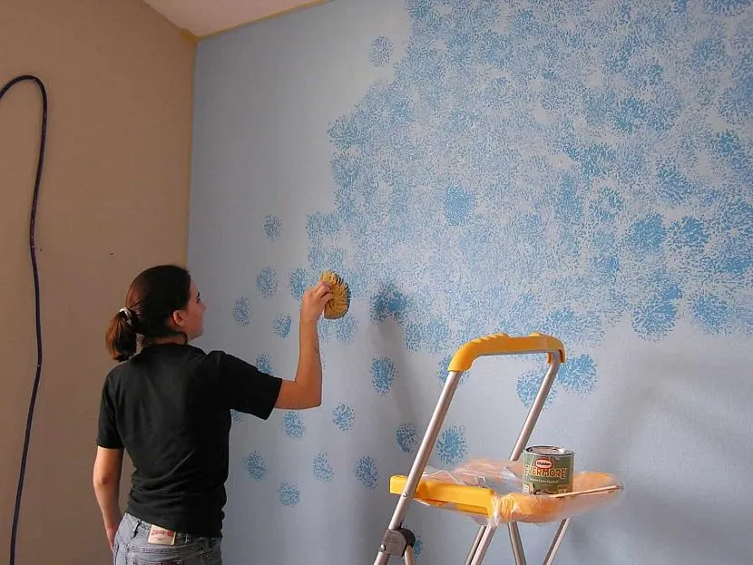 - Завершающая отделка. После того, как первый слой высыхает, при необходимости делают нанесение нового, чтобы получить более насыщенный тон стены.