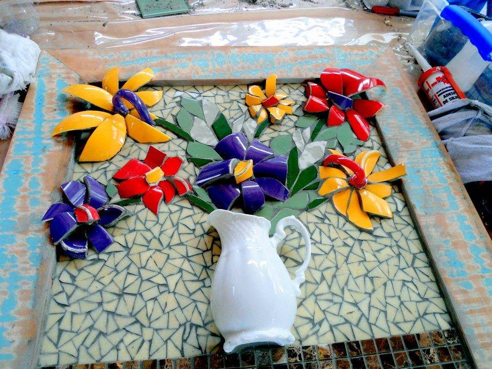 Самодельная мозаика из битой посуды должна выполняться в строгой последовательности, и для этого нужно: