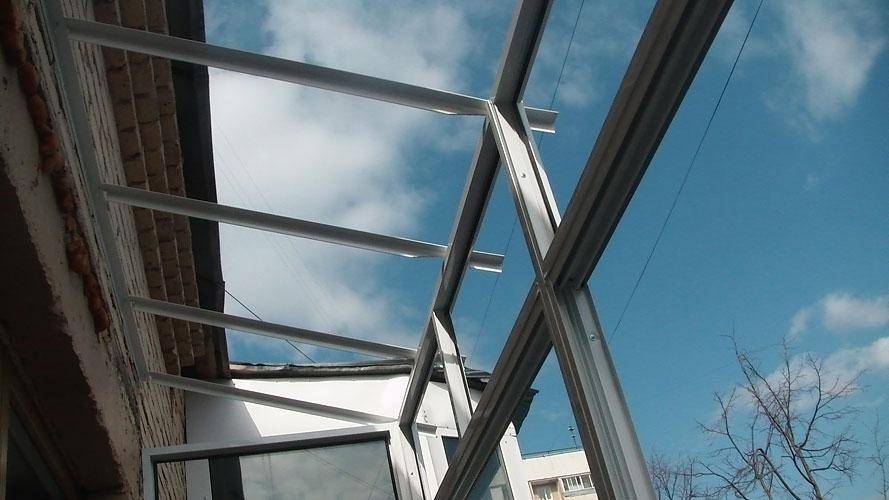Чтобы застеклять балконы на последнем этаже, используется консольный и опорно-стоечный вид кровли.