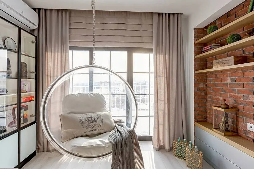 Занавески для жилой комнаты в стиле лофтИсточник design-homes.ru