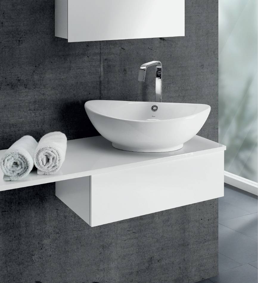 - В плане подводки коммуникаций к сантехническому прибору не возникает никаких трудностей. Кроме того, благодаря накладному способу установки, появляется возможность скрыть все коммуникации под столешницей или же в другой банной мебели;
