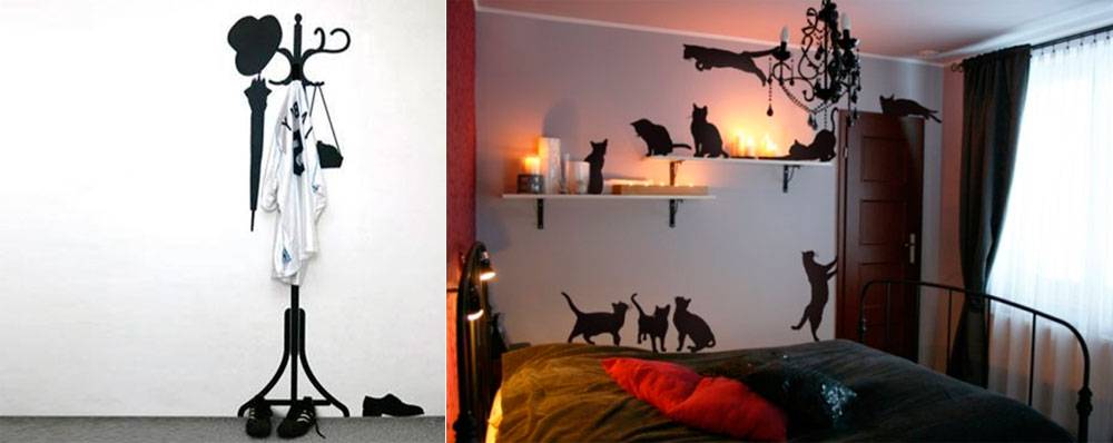 При этом важно помнить, что черные стикеры эффектно выглядят на светлых стенах, а белыми стикерами лучше украсить обои в темных тонах.