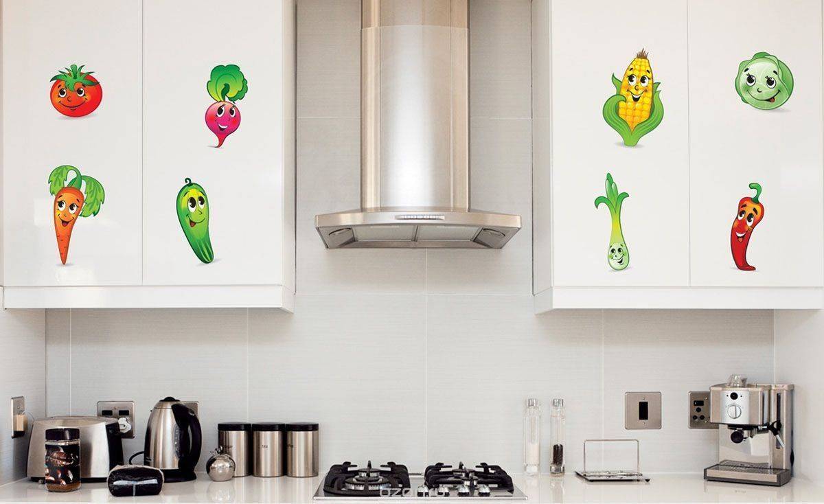 Стикеры, распространены в детских комнатах, но вы можете украсить ими также кухню или гостиную. С их помощью можно оклеить холодильник, двери, элементы мебели, посудомоечную машину или изменить фасады шкафов, тем самым разбить монотонность, сложившуюся в доме. Вы можете приклеить их на стены, двери, плитку, ноутбук или другие гладкие поверхности.