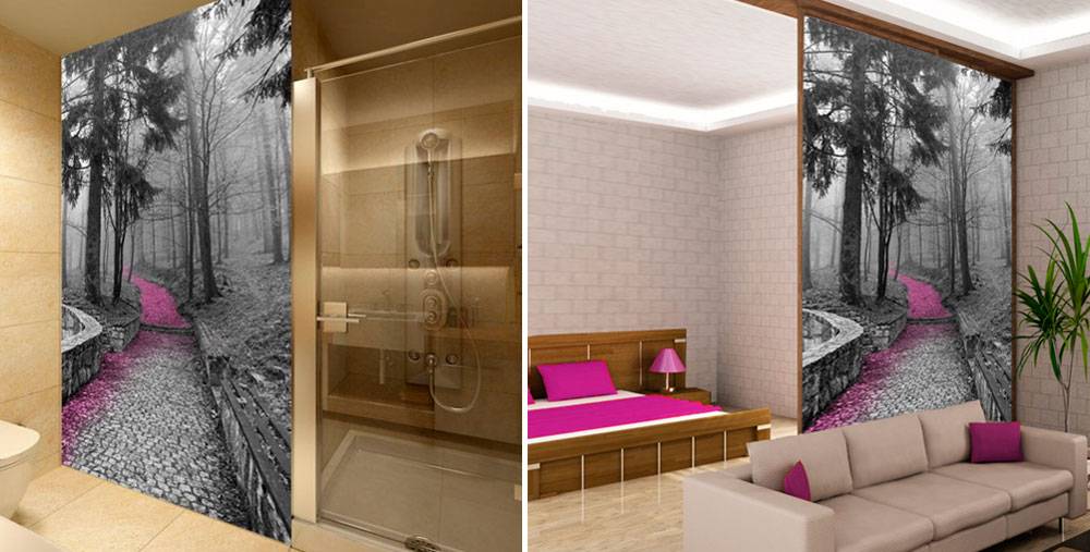 Если вы не чувствуете себя достаточно смелыми, чтобы экспериментировать с фотообоями, вы можете выбрать менее радикальный вариант в виде наклеек на стену, например, виниры и фотоламинаты. При использовании их в несколько мгновений, и за очень небольшие деньги вы можете полностью изменить интерьер комнаты.