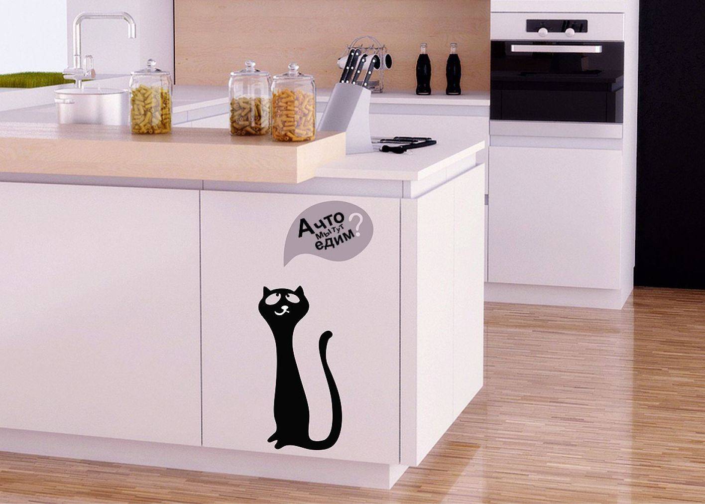 … или украсить фасады кухонной мебели портретом любимого кота…