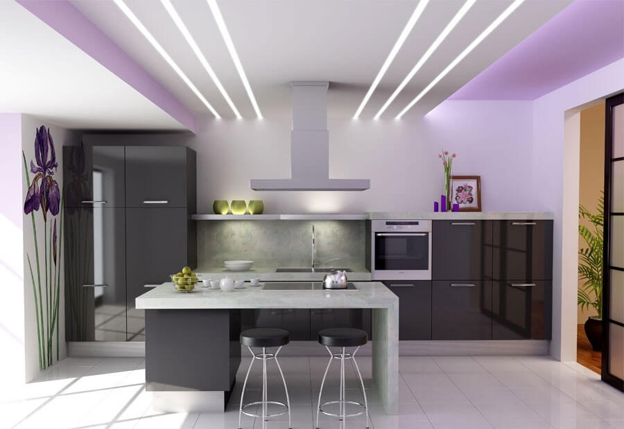 Какой вариант освещения лучше выбрать для натяжных потолков в кухне?