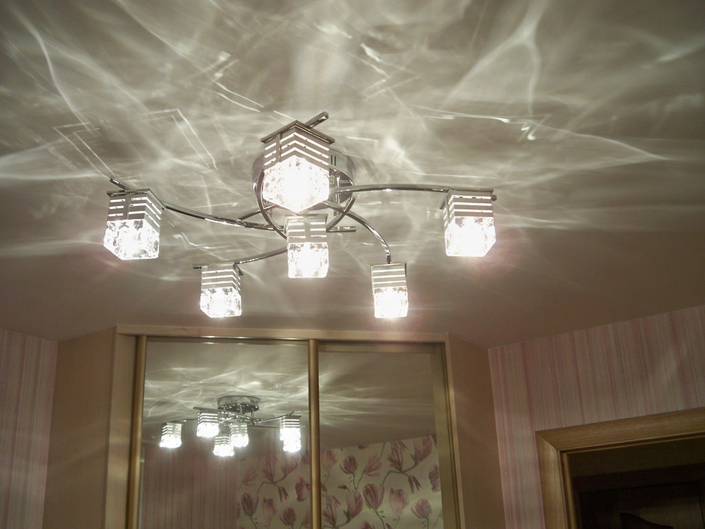 - глянцевые потолки могут увеличить количество света в несколько раз, непринято направлять плафоны люстры в их сторону;