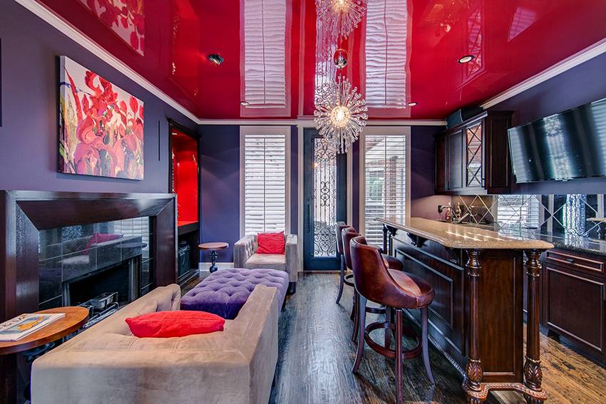 - красный – полотно настолько яркого цвета, как правило, комбинируется с белой гипсокартонной конструкцией. Обязательное условие – глянцевый блеск.