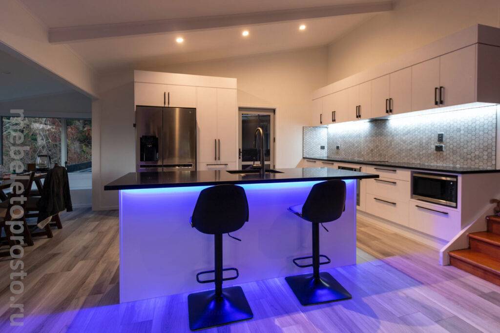 Как видите, справиться с установкой светодиодной подсветки можно и своими руками. Поэтому главная задача – правильно выбрать длину материала, трансформатор и контроллер, приняв в расчет конфигурацию потолка кухни и ожидаемый декоративный эффект. Но если вы сомневаетесь в своих силах или правильности сделанных расчетов, лучше доверить покупку комплектующих и монтаж подсветки квалифицированному электрику.