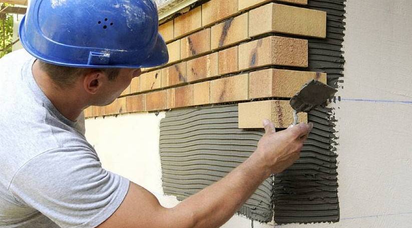 Монтаж производится с применением клеевого состава. Подходящий вариант для отделки фасада не тяжелыми изделиями, которые покроют стену из пеноблоков или кирпича с ровной поверхностью.