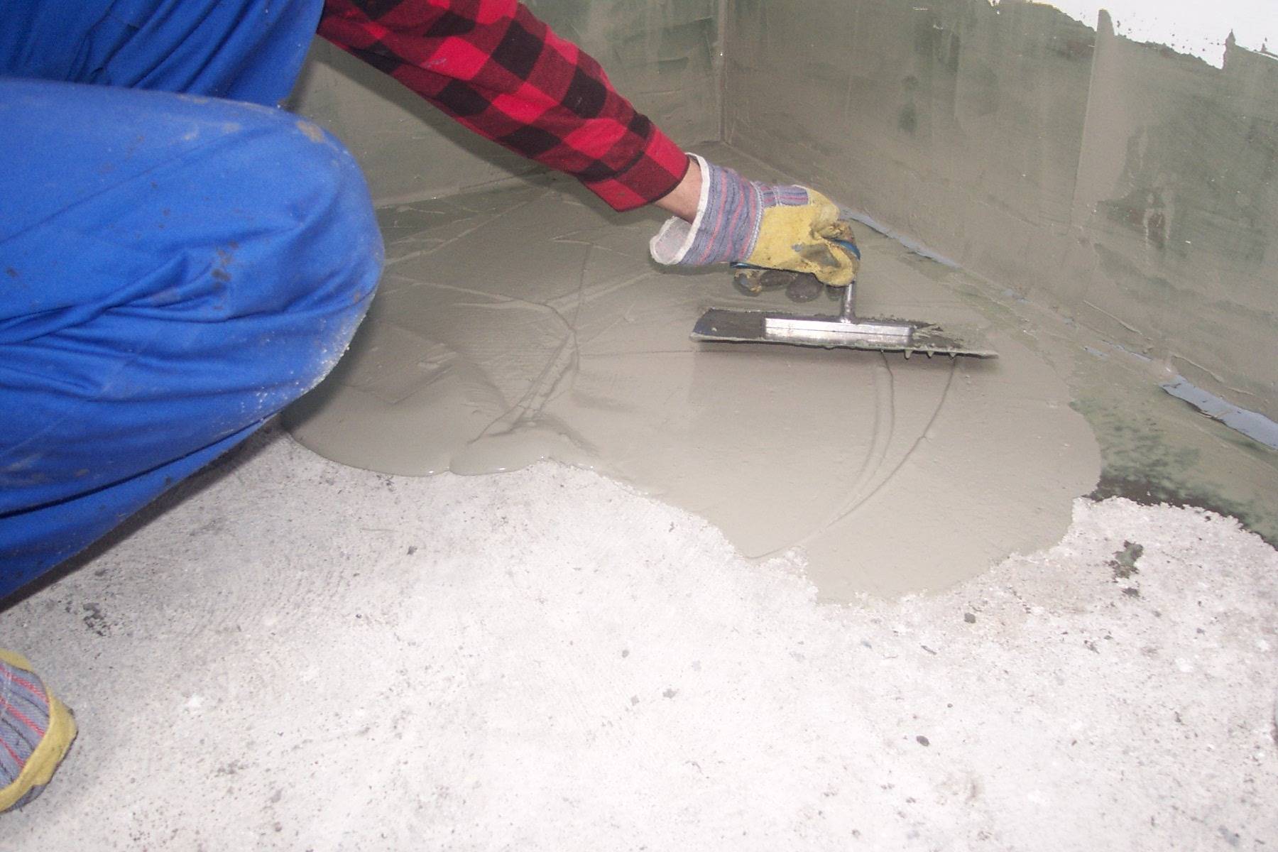 Гидроизоляция поверх стяжки производится цементно-полимерными материалами