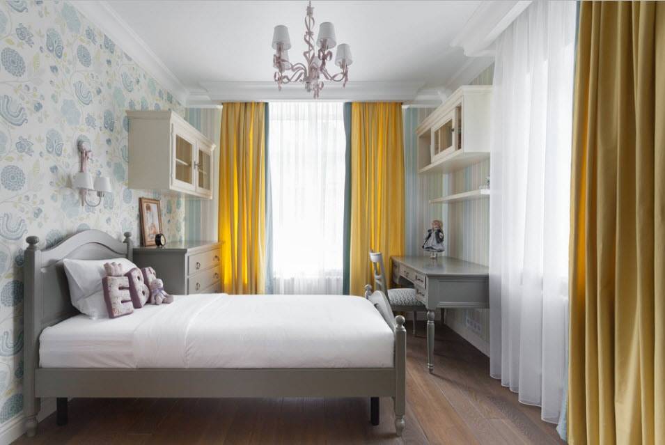 То же правило желательно использовать для детской комнаты. Игровая зона выделяется ярким рисунком и выразительными цветами. Зона отдыха, учебная зона, где расположен письменный стол, должна быть выдержана в спокойных тонах.