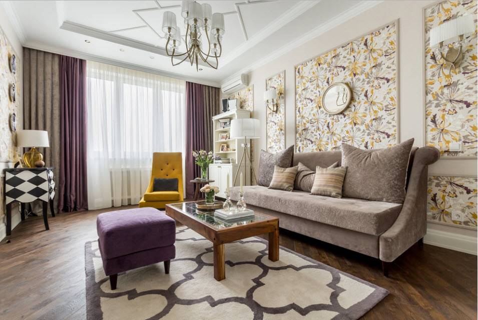 Комбинирование обоев в гостиной 2021