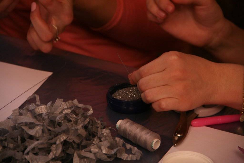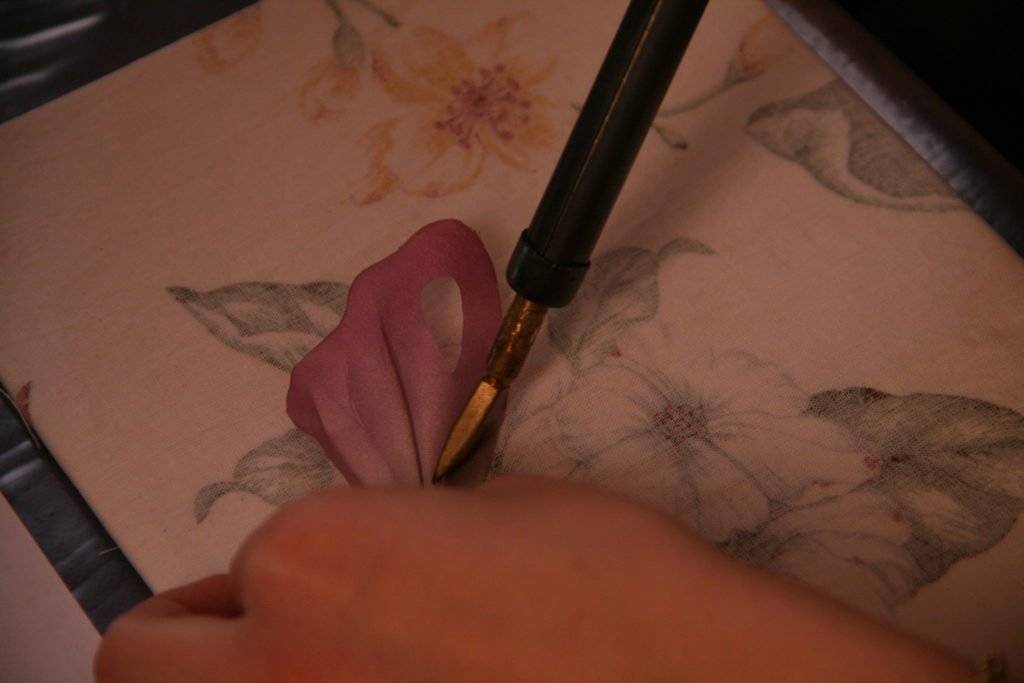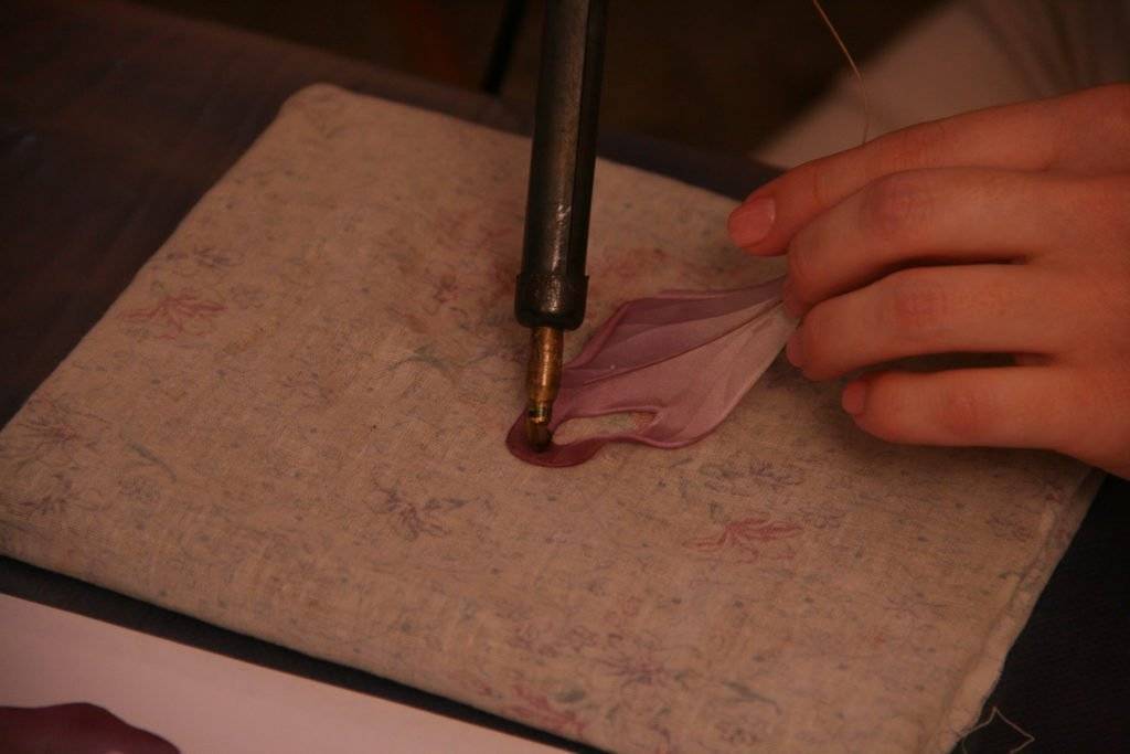- Любая ткань, но лучше использовать гипюр. Аппликация будет выглядеть объёмно, а рифлёная структура ткани придаст красивые переливы.