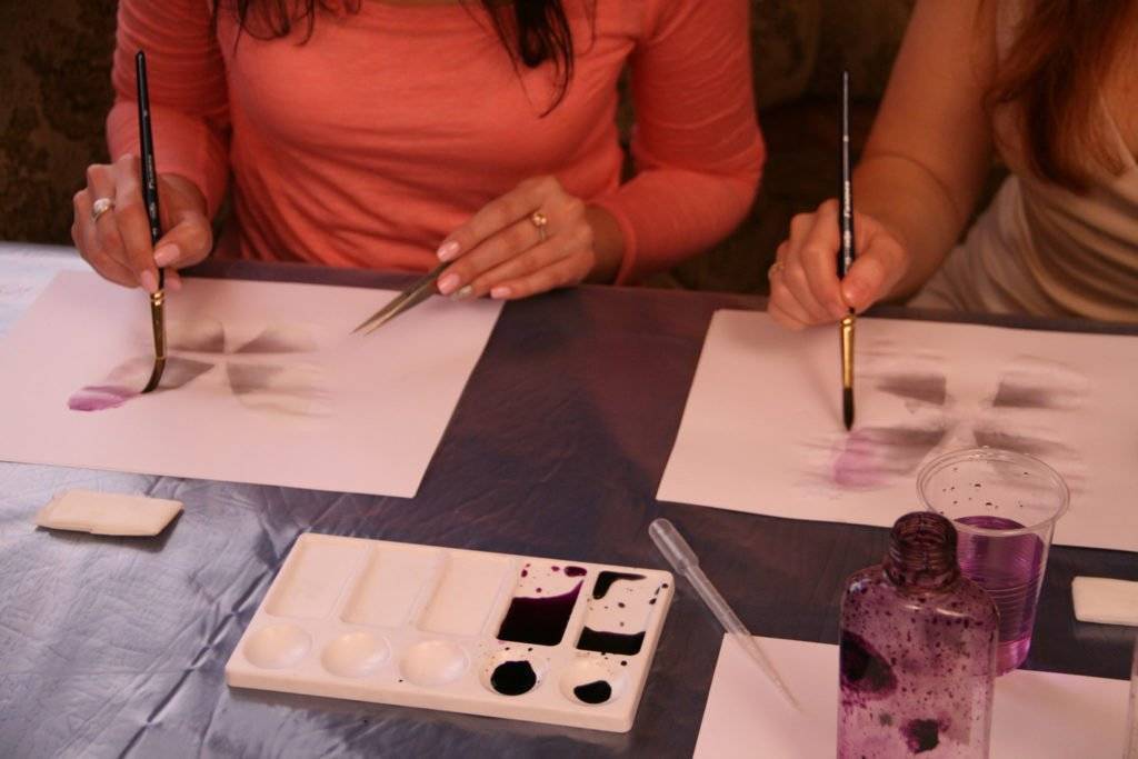 Окрашиваю крылья краской фиолетового и серого цвета, стараясь как можно качественнее размыть границы двух оттенков.