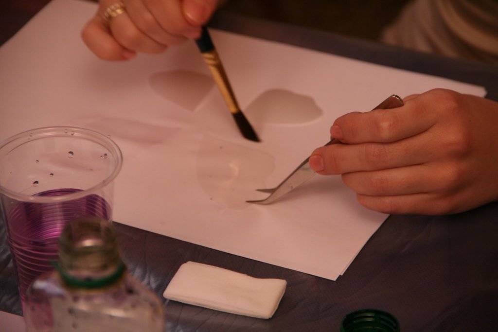 Насадкой одинарный нож с лицевой стороны рисую прожилки на крылышках бабочки.