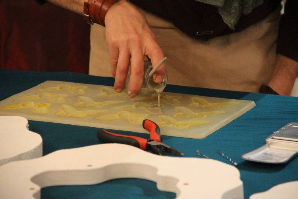 После высыхания крыльев клеем ПВА с изнаночной стороны деталей приклеиваю проволоку, обернутую бумагой.