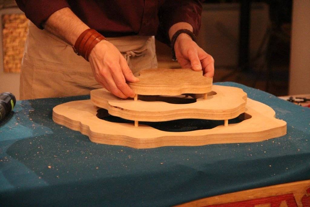 - Полученные детали приклеиваем стыками «запястий» к основанию из цветного картона.