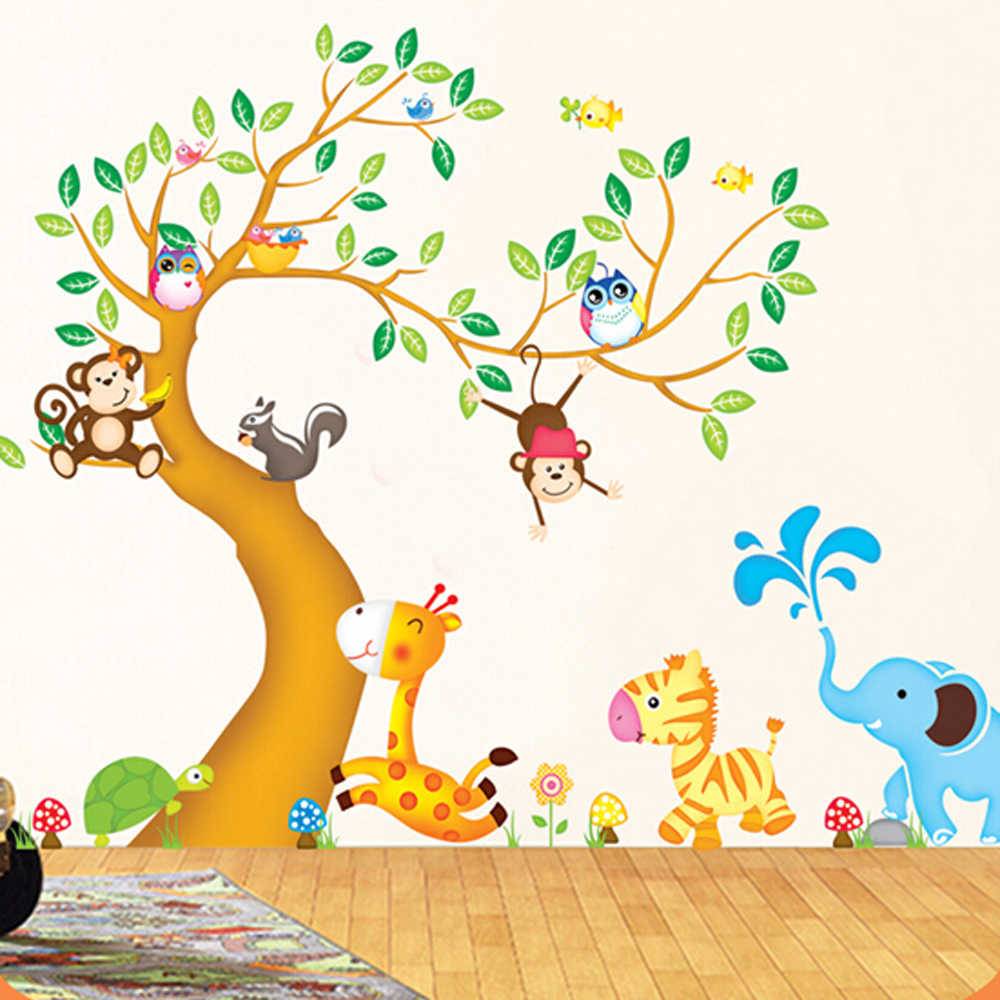 Чтобы оформить комнату с изображением животных на стене, чаще используются фотообои. В специализированных магазинах продаются многоразовые наклейки, которые подходят для крепления на любой тип поверхности.