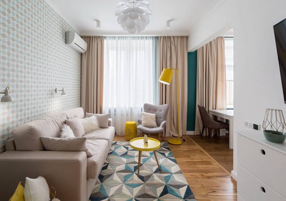 Легкие и нежные оттенки придадут гостиной настроение спокойствия и умиротворенности. Они визуально увеличивают пространство, поэтому прекрасно подходят для небольших помещений.