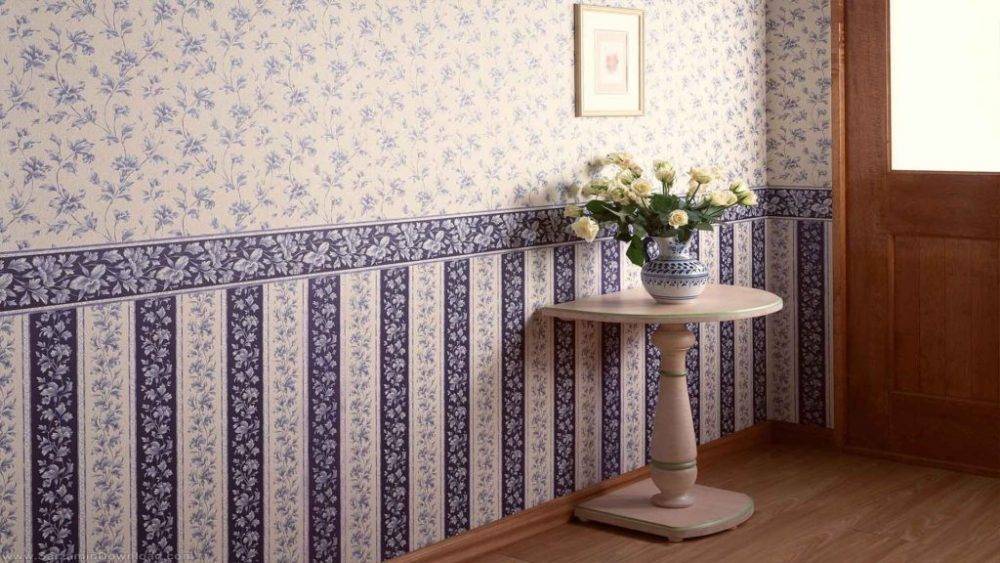 Отделка стен обоями, комбинирующимися горизонтальными и вертикальными линиями