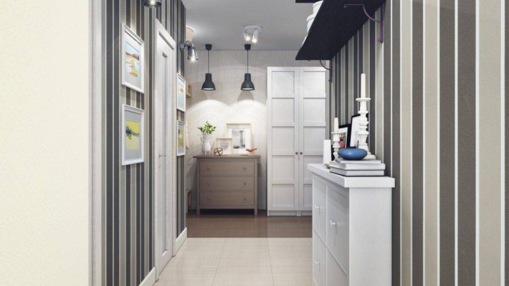 Полосатые стены хорошо впишутся в светлую прихожую, однако важно учитывать направление полосы. Горизонтальные полоски расширяют помещение, но визуально делают потолки ниже