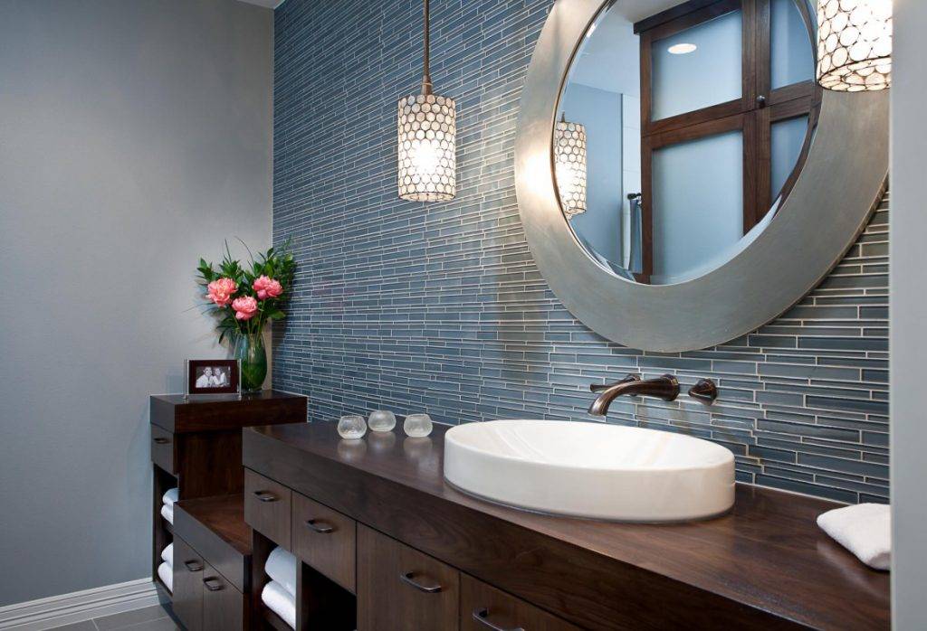 Отдельной деталью, которая заслуживает большого внимания, является зеркало в ванной комнате. Правильно подобранная поверхность поможет сделать помещение больше визуально. И в то же время слишком большое количество этих предметов интерьера может навредить общему виду.