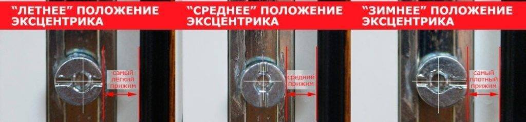 Такую же проблему может вызвать неправильно настроенный регулирующий эксцентрик (зимой выставлен летний режим). Механизм регулирует степень прижатия створки и в летнем положении прижатие слабее, чем в зимнем. На заданный режим указывает маркер, расположенный на эксцентрике.