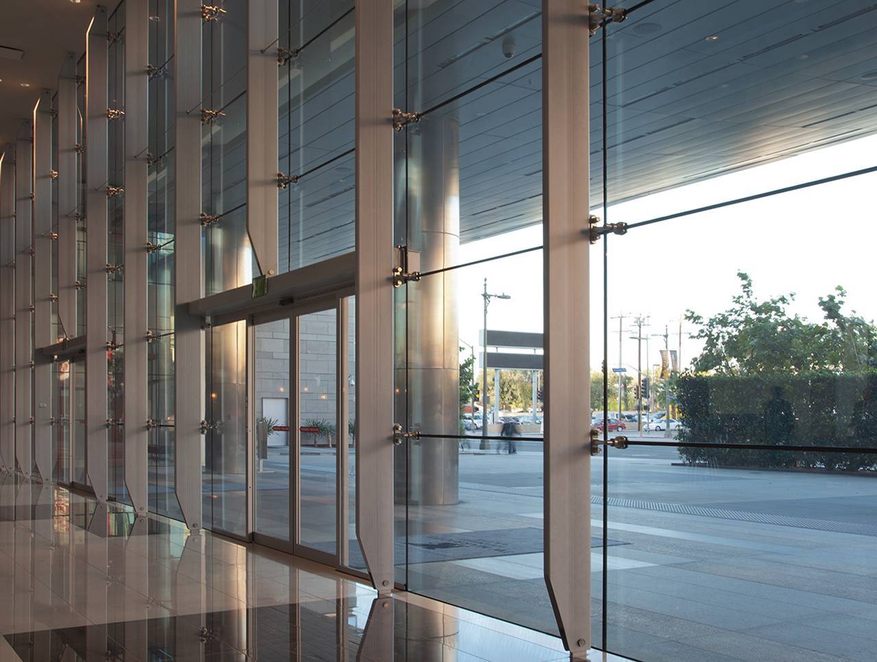 – современная технология строительства ограждающих конструкций зданий с использованием архитектурного стекла (стеклопакетов) и алюминиевого профиля или точечных крепежей из нержавеющей стали.