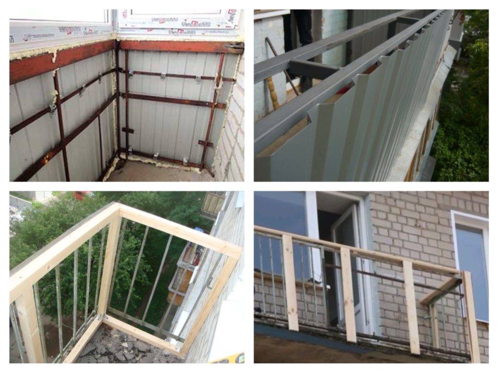 Листы разных типов начинают крепить на стартовый металлопрофиль или брусья. Чтобы закрыть балкон, применяют разные варианты фиксации отделочных покрытий: