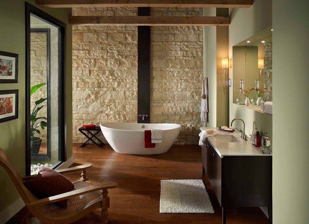 Естественный цвет хорошо работает в ванных комнатах. Бронза, беж и серый привносят приятный, теплый климат в интерьер, и этот эффект усиливается благодаря использованию в нем натуральных материалов. В комнате, устроенной таким образом, хорошо отдохнуть и привести себя в порядок, особенно, женщинам. Кожа выглядит намного лучше в окружении теплых тонов, чем, когда падающий на нее свет приобретает оттенок зелено-синих стен. Хотите, чтобы ванная комната была оформлена в экологическом духе, где можно расслабиться после трудового дня? Делайте ставку на земляную палитру.
