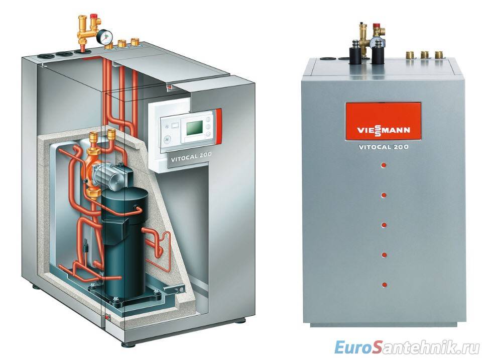 Принцип работы оборудования заключается в отборе энергии у источников с низким потенциалом и последующей передачей тепла для дальнейшего прогрева теплоносителя, который затем транспортируется по трубам отопления. Конструкция тепловых насосов напоминает узел холодильника, тут тоже есть теплообменник, испаритель, компрессор.
